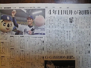 「大暴れ和田」と、カラー写真つきでドラゴンズの記事が載っていて