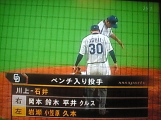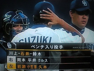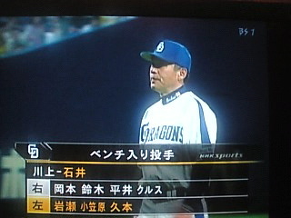 (中)川上、石井、鈴木、久本、岡本、クルス、平井-谷繁
