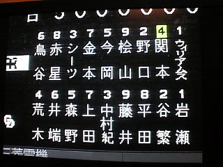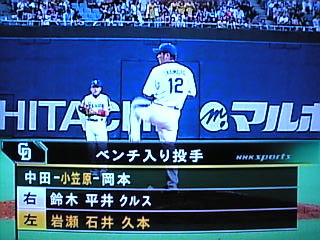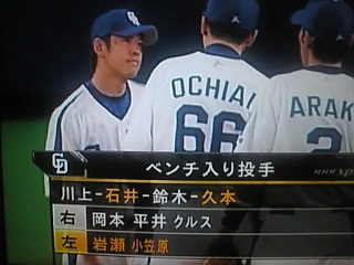 (中)朝倉、山井、クルス、岡本、岩瀬-谷繁
