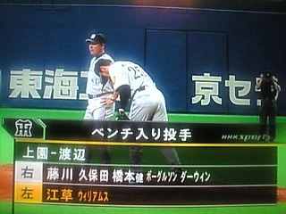 (神)下柳、渡辺、久保田、ダーウィン、橋本健-矢野