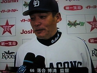 ところで、試合後の監督インタビュー、落合監督には気の毒だ。