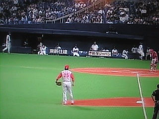 完封で終わらせたかったのに、森野の悪送球で古田プレマネがホームイン(-.-;)