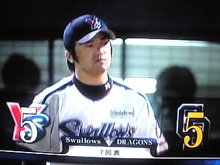 揉めたあと、朝倉投手の甘い球が打たれたものの、同点に。