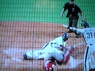 タイロン選手、セーフで逆転勝利!と思った・・・ら。アウトでした。