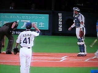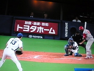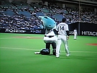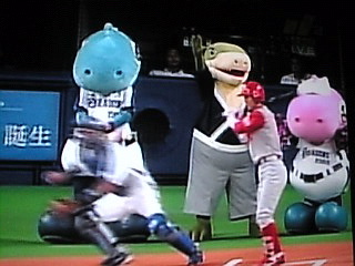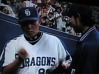 なんだかな〜。でも当てられた谷繁捕手、笑いすぎ。私も笑ったがw