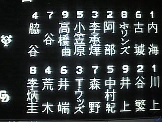 (中)川上、菊池、クルス、高橋-谷繁