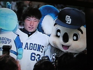 勝ったよー お立ち台はアキフミ投手(微妙だけど良かったね!)