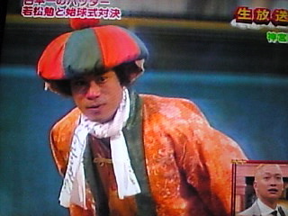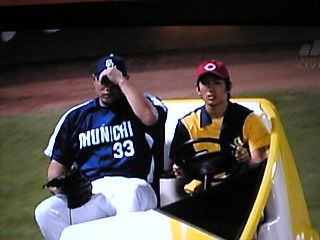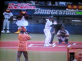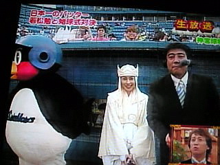 FNS 27時間テレビ、乱入の始球式。そっか、フジ系列だもんね。
