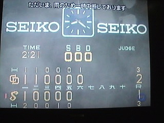 雨で中断。たっつん笑顔ですね。 降雨コールド(この雨じゃ無理)