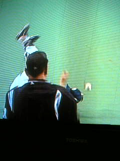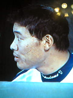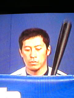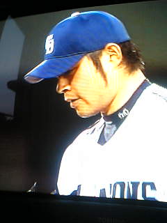 見にくいですが、八ツ墓村みたいな足が憲伸。ボールも見えます?