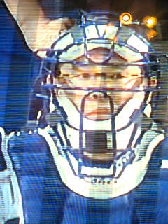今度は李の打球がキャッチャー矢野の股間を直撃(マジ大丈夫ですか!)